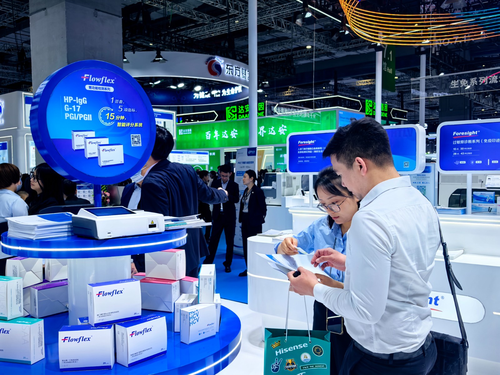 展館內人流如織,在7.1號館核心展艾康生物以“技術普惠”為炬,點亮2025CMEF的舞臺。其中,快診和生化兩大技術平臺更是成為關注焦點。